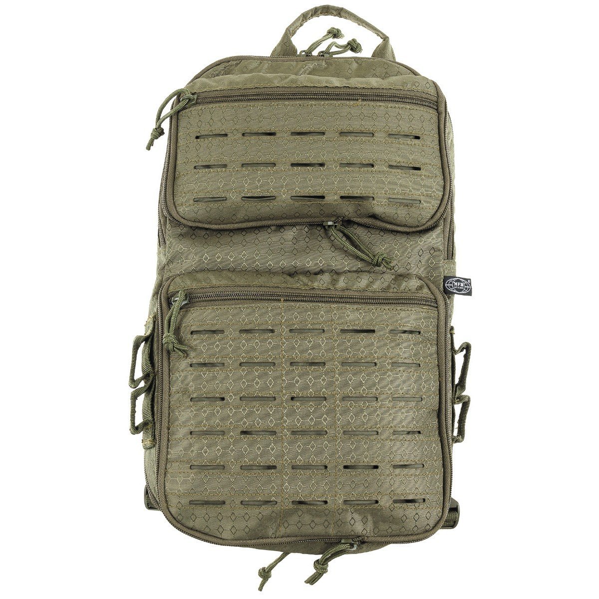 vpředu různá poutka pro připevnění Molle, řezáné laserem