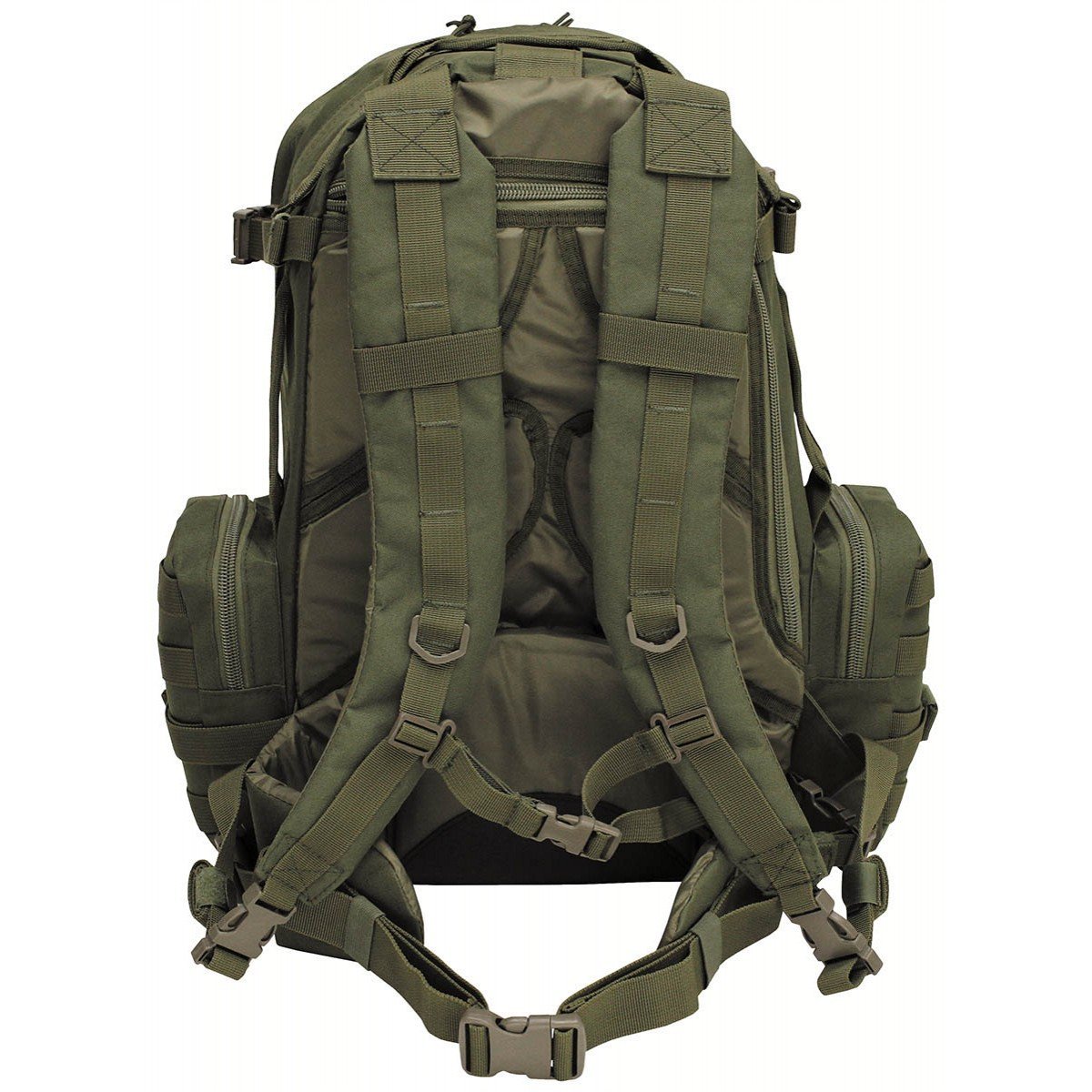 Polstrovaný batoh s nastavitelnými popruhy a systémem molle.