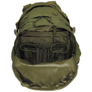 přední kapsa dole s 2cestným zipem se síťovými vložkami a připojovacími smyčkami Molle