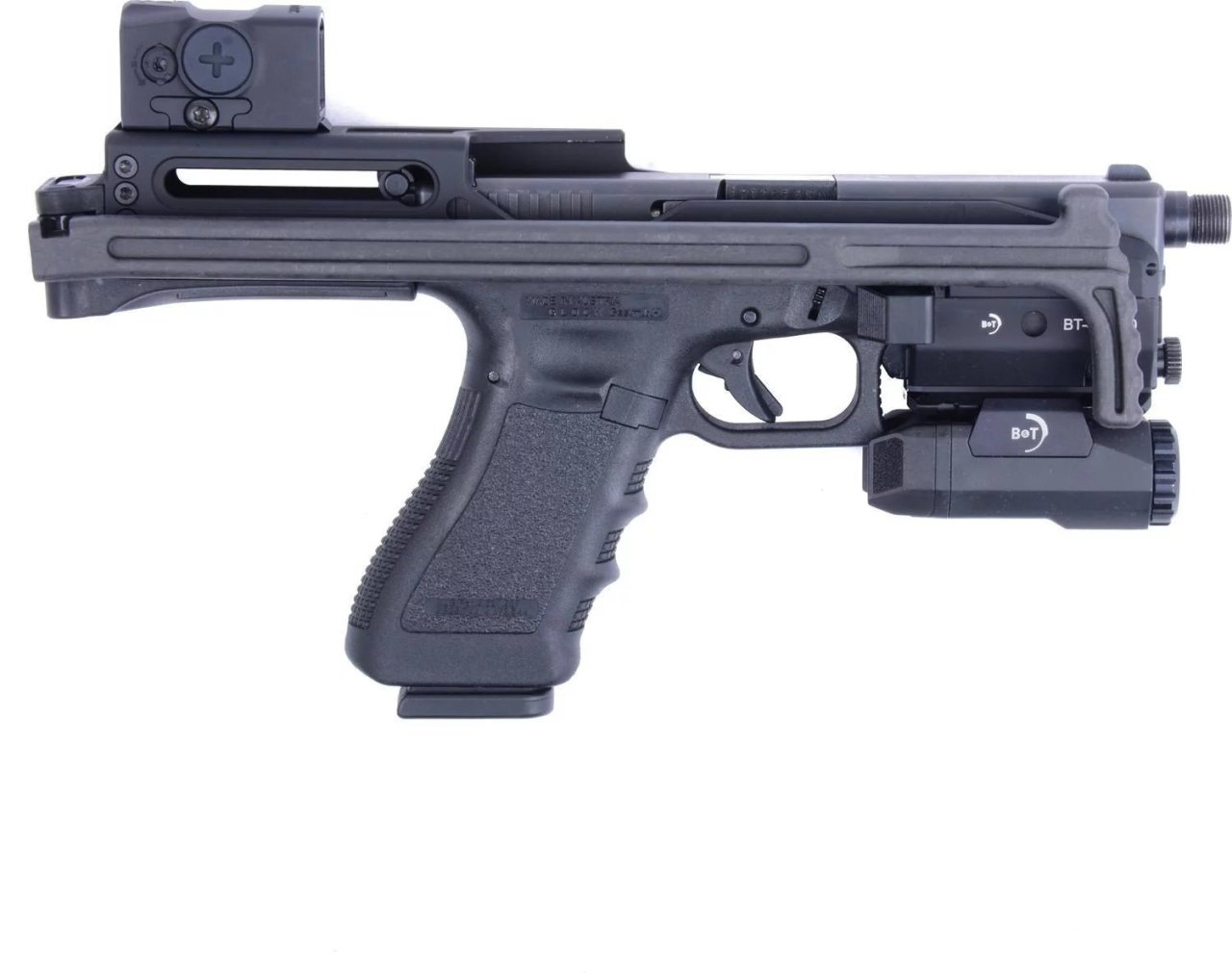 Konverze USW-G17 umožňuje uživateli používat pistoli Glock, jak tradičním způsobem, tak i s opěrem v rameni. Tato změna zabere pouhou vteřinu. Díky promyšlenému zpracování je možné použití kolimátoru i pevných mířidel najednou. Konverzní sadu B&T USW-G17 je možné použít na pistole Glock se standartním railem (Genenrace 3 – 5) v rážích 9 x 19 mm, .40 S&W a .357 SIG. Instalace je velmi snadná, není třeba žádných zákroků do zbraně (pouze výměna zadního čela závěru). Součástí setu je: Sklápěcí pažba, kryt závěru s adaptérem pro připojení pažby, manual, lanko, NAR/Picatinny adaptér (pro kolimátor a svítilnu) *svítilna a kolimátor nejsou součástí setu