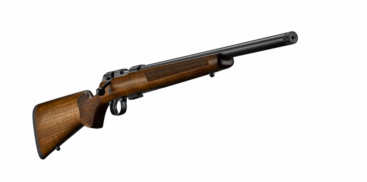 Oblíbené provedení s lakovanou pažbou typu American a těžkou 525mm hlavní, ideální pro přesnou sportovní a loveckou střelbu na střední i větší vzdálenosti. Pro montáž zaměřovacího dalekohledu je určena osvědčená 11mm lišta CZ na horní časti lůžka.