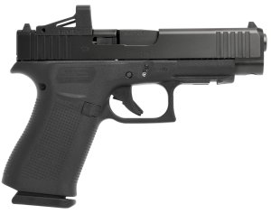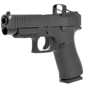 Pistole GLOCK 48 R/MOS/FS s jednořadým zásobníkem v ráži 9x19 je ideální zbraň pro skryté nošení. Dodává se v sadě se dvěma zásobníky na 10 nábojů.