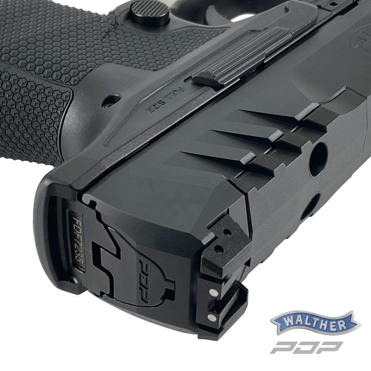 Novinka pro rok 2021 v portfoliu Carl Walther GmbH. PDP = Performance Duty Pistol je univerzální zbraň vhodná pro služební, obranné, tak i sportovní použití. Řada PDP se vyrábí ve dvou verzích velikosti rámů. Full Size (délka hlavně 4", 4,5", 5") a Compact (4" a 5") prozatím pouze v ráži 9 mm Luger. Hlavní rozdíl je v délce rukojeti. Zatímco PDP Full Size pojme zásobník na 18 nábojů a má delší rukojeť, takže bude vyhovovat střelcům s větší rukou, modely PDP Compact délkou prakticky kopírují kratší rukojeť pistolí Walther PPQ a pojmou zásobník na 15 nábojů. Základní technické data Walther PDP Full Size 4,5" jsou 143 mm výška, 34 mm šířka a celková délka zbraně je 198 mm. Nejvýraznějsím prvkem masivního závěrou jsou zvětšné hmatníky tzv. SuperTerrain pro kvalitnější ovládání. Ty značně usnadňují manipulaci s i bez rukavic ve všech povětrnostních podmínkách. Všechny pistole PDP jsou tzv. Optics Ready = jsou připraveny pro instalaci pistolových kolimátorů. Krycí deska základny kolimátoru přesně kopíruje profil závěru a po jejím odšroubování lze pomocí příslušných adaptérů instalovat pistolové kolimátory prakticky všech předních výrobců.
