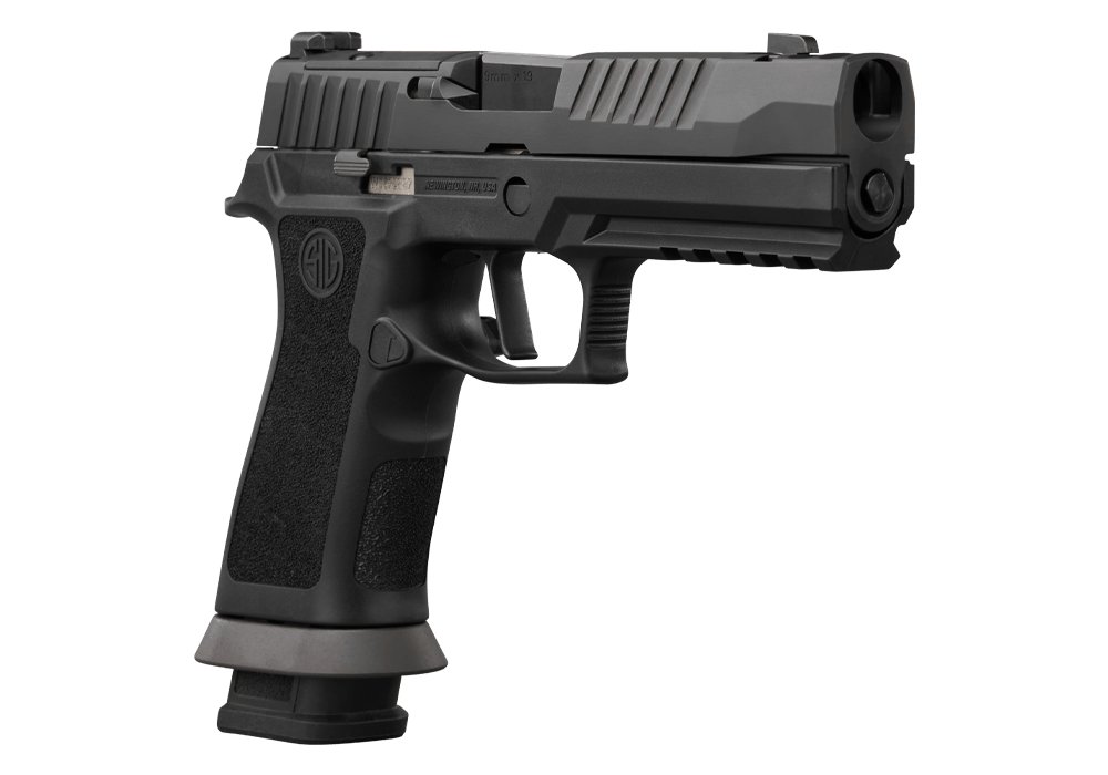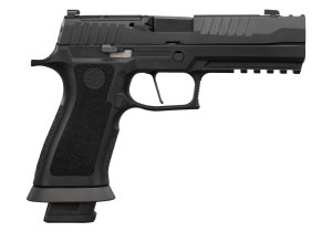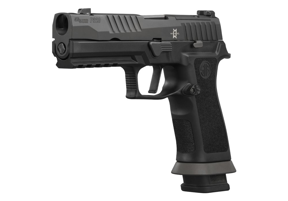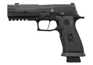 Design Pro-Cut závěru s povrchovou úpravou Nitron je perfektně sladěný s černě eloxovaným AGX tělem zbraně. Moderní prvky a modularita řady P320 v kombinaci s výkonem a vlastnostmi kovového rámu poskytují vskutku speciální zážitek. Černě eloxovaný AXG rám je doplněn G10 střenkami od Hogue a odnímatelnou Magwell pro snadnější přebíjení. Plochá spoušť XSeries zajišťuje čisté spuštění mechanizmu v 90° a napomáhá větší přesnosti a přesnějšímu trigger resetu. Optics ready Pro-cut závěr je osazen tritiovými mířidly XRax3 a je kompatibilní s kolimátory Romeo1PRO, Romeo2 a Deltapoint PRO (uchycení přímo na závěr, bez montážních destiček). Zbraň je dodávána se dvěma 17-ti rannými zásobníky s duralovými botkami Hennig Group. Běžné zásobníky pro P320 nejsou kompatibilní s Magvell na tomto modelu, ta musí být pro použití s běžnými zásobníky sundána